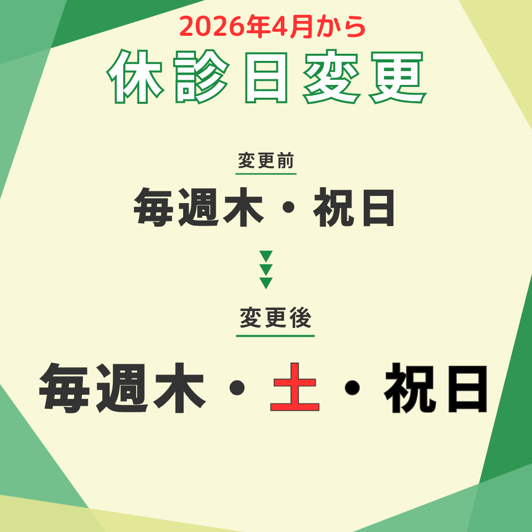2026年4月より、休診日を下記の通り変更させていただきます。